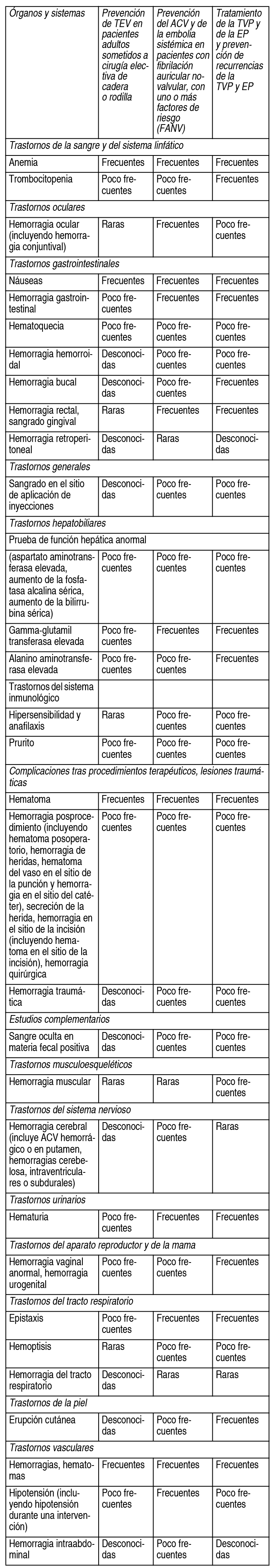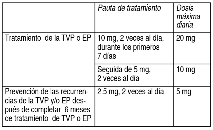 COMPOSICION: Ixipen 2.5: Cada comprimido recubierto contiene: Apixabán 2.5000 mg. Excipientes: Lactosa Anhidra 50.2500 mg, Celulosa Microcristalina 41.0000 mg, Croscarmelosa Sódica 4.0000 mg, Lauril Sulfato de Sodio 1.0000 mg, Estearato de Magnesio 1.2500 mg, Óxido de Hierro Amarillo (CI N.° 77492) 0.1000 mg, Hidroxipropilmetilcelulosa 3.0135 mg, Dióxido de Titanio 1.4455 mg, Triacetina 0.4410 mg. Ixipen 5: Cada comprimido recubierto contiene: Apixabán 5.00 mg. Excipientes: Lactosa Anhidra 100.50 mg, Celulosa Microcristalina 82.00 mg, Croscarmelosa Sódica 8.00 mg, Lauril Sulfato de Sodio 2.00 mg, Estearato de Magnesio 2.50 mg, Hidroxipropilmetilcelulosa 6.15 mg, Dióxido de Titanio 2.95 mg, Triacetina 0.90 mg. ACCION: Agente antitrombótico, inhibidor directo del Factor Xa de la coagulación. Código ATC: B01AF02. INDICACIONES: Ixipen está indicado para: Prevención de eventos de tromboembolia venosa (TEV), en pacientes adultos sometidos a cirugía electiva de sustitución de cadera o rodilla. Prevención del accidente cerebrovascular (ACV) y de la embolia sistémica, en pacientes adultos con fibrilación auricular no valvular, con uno o más factores de riesgo, tales como ACV o ataque isquémico transitorio (AIT) previos; edad ≥75 años; hipertensión arterial; insuficiencia cardíaca sintomática (Clase 2 o mayor en la escala NYHA). Tratamiento de la trombosis venosa profunda (TVP) y de la embolia pulmonar (EP), y prevención de las recurrencias de la TVP y de la EP, en pacientes adultos. DOSIS: Adultos: Prevención del TEV en cirugía electiva de reemplazo de cadera o rodilla: La dosis recomendada de apixabán es de 2.5 mg, por vía oral, administrados 2 veces al día. La dosis inicial se debe tomar de 12 a 24 horas después de la cirugía. El médico debe evaluar los potenciales beneficios de una anticoagulación precoz, así como también los riesgos de sangrado posquirúrgico, al decidir el momento de la administración de apixabán dentro de este lapso. En pacientes sometidos a una cirugía de reemplazo de cadera: La duración recomendada del tratamiento es de 32 a 38 días. En pacientes sometidos a una cirugía de reemplazo de rodilla: La duración recomendada de tratamiento es de 10 a 14 días. Prevención del ACV y de la embolia sistémica en pacientes con fibrilación auricular no valvular: La dosis recomendada de apixabán es de 5 mg, por vía oral, administrados 2 veces al día. Reducción de dosis: La dosis recomendada de apixabán es de 2.5 mg, administrados 2 veces al día, para pacientes con fibrilación auricular no valvular y al menos 2 de las siguientes características: edad ≥80 años, peso corporal ≤60 kg o creatinina sérica igual o mayor a 1.5 mg/dl (133 micromoles/l). La duración del tratamiento es de largo plazo. Tratamiento de la TVP, tratamiento de la EP y prevención de las recurrencias de la TVP y de la EP: La dosis recomendada de apixabán para el tratamiento de la TVP aguda y de la EP, es de 10 mg, por vía oral, administrada 2 veces al día, durante los primeros 7 días, seguida de 5 mg, 2 veces al día. Según las guías médicas disponibles, la duración corta del tratamiento (como mínimo de 3 meses), se debe basar en factores de riesgo transitorios (por ejemplo, cirugía reciente, traumatismo, inmovilización). La dosis recomendada de apixabán para la prevención de las recurrencias de TVP y de la EP es de 2.5 mg, por vía oral, administrada 2 veces al día. Cuando esté indicada la prevención de las recurrencias de la TVP y de la EP, se debe iniciar con 2.5 mg, 2 veces al día, después de completar 6 meses de tratamiento con apixabán 5 mg, 2 veces al día, o con otro anticoagulante, tal como se indica en la tabla a continuación: Ver Tabla La duración del tratamiento se debe individualizar en cada caso, luego de evaluar el beneficio del tratamiento frente al riesgo de hemorragia. Forma de administración: Vía oral. Los comprimidos de Ixipen se deben tragar con agua, con o sin los alimentos. Es posible triturar los comprimidos y disolverlos con agua, o glucosa al 6 %, o jugo de manzana, o mezclarlo con alimentos blandos (como puré de manzana), y administrarlos inmediatamente, en aquellos pacientes con dificultad al tragar. El comprimido de Ixipen puede ser triturado y disuelto en 60 ml de agua o glucosa al 6 % y administrarse inmediatamente por sonda nasogástrica. Olvido de dosis: En caso de olvido en la toma de una dosis, el paciente debe tomar inmediatamente la dosis olvidada y luego continuar con la dosis siguiente a la hora programada. La dosis no se debe duplicar para compensar una dosis olvidada. Cambio de tratamiento: Se puede realizar cambio de tratamiento de anticoagulantes parenterales a apixabán y viceversa en la próxima dosis programada. Estos medicamentos no deben ser administrados simultáneamente. Cambio de tratamiento de antagonistas de la vitamina K a Ixipen: Cuando se cambie de tratamiento de un antagonista de la vitamina K a Ixipen, se debe discontinuar el tratamiento con warfarina u otro tratamiento con antagonistas de la vitamina K e iniciar el tratamiento con Ixipen cuando el RIN (Rango Internacional Normalizado) sea menor a 2. Cambio de tratamiento de Ixipen a antagonistas de la vitamina: Cuando se cambie de tratamiento de Ixipen a un antagonista de la vitamina K, continuar con la administración de Ixipen durante al menos 2 días después de comenzar el tratamiento con el antagonista de la vitamina K. Después de 2 días de coadministración de Ixipen con el antagonista de la vitamina K, se debe realizar una medición del RIN antes de la próxima dosis programada de Ixipen. Continuar con la coadministración de Ixipen y el antagonista de la vitamina K hasta que el RIN sea igual o mayor a 2. Información adicional: Pacientes con disfunción hepática: Ixipen está contraindicado en los pacientes con enfermedad hepática asociada a coagulopatía y riesgo de sangrado relevante. No se recomienda el uso en p
