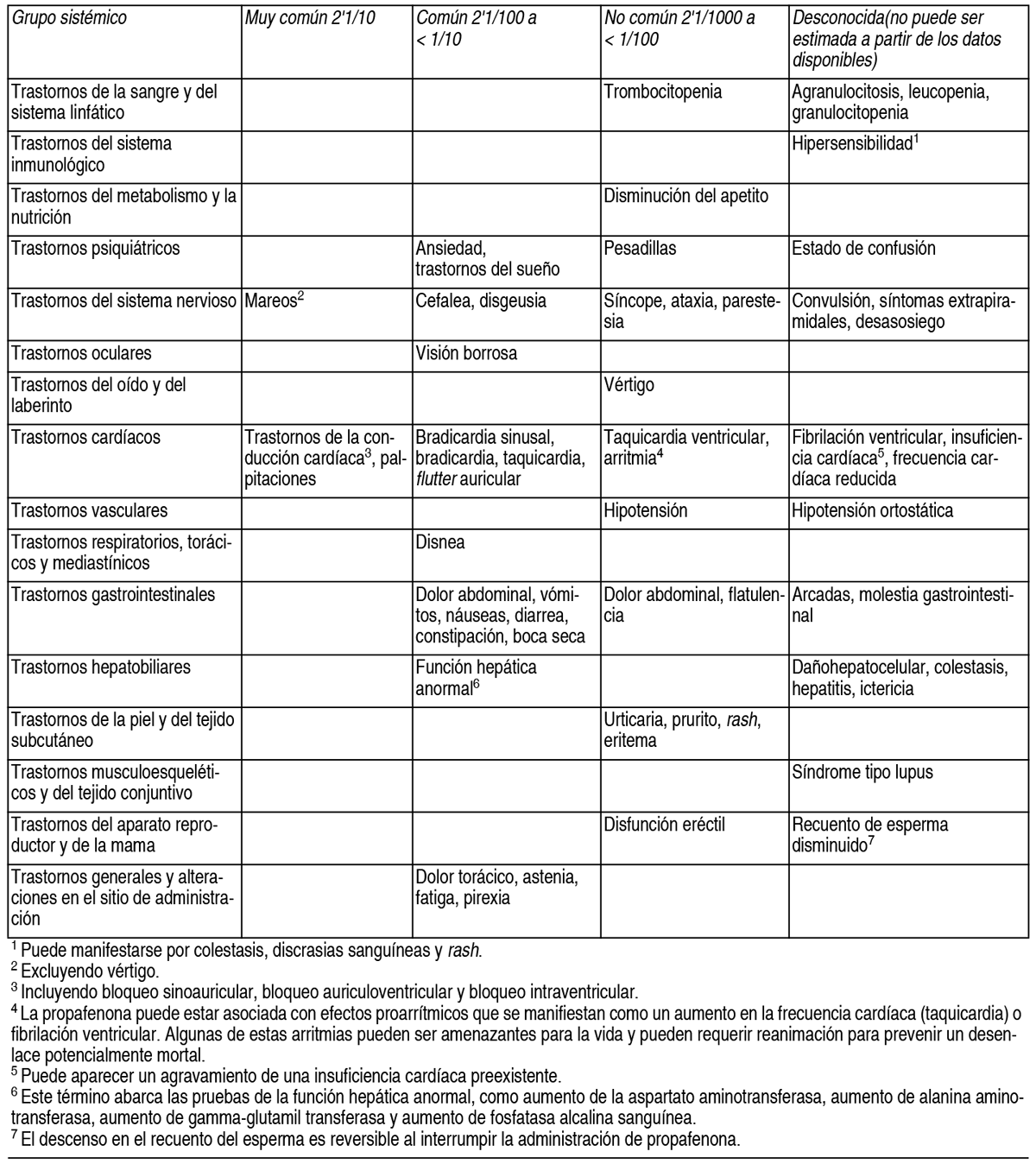 COMPOSICION: Normorytmin XR 225: Cada cápsula de liberación prolongada contiene 225 mg de Clorhidrato de Propafenona, Hipromelosa 2910 7.20 mg, Estearato de Magnesio 1.80 mg, Agua Purificada c.s.p. Contenido de la cápsula: Gelatina 74.3888 mg, Dióxido de Titanio E171 1.520 mg, Laurilsulfato de Sodio 0.152 mg. Composición de la tinta de impresión para la cápsula (trazas): Óxidos e Hidróxidos Férricos E 172 (óxido férrico rojo), Shellac, Propilenglicol, Hidróxido de Potasio. Normorytmin XR 325: Cada cápsula de liberación prolongada contiene 325 mg de Clorhidrato de Propafenona, Hipromelosa 2910 10.40 mg, Estearato de Magnesio 2.60 mg, Agua Purificada c.s.p. Contenido de la cápsula: Gelatina 96.04 mg, Dióxido de Titanio E171 1.96 mg, Laurilsulfato de Sodio 0.196 mg. Composición de la tinta de impresión para cápsula (trazas): Óxidos e Hidróxidos Férricos, E 172 (óxido férrico rojo), Shellac, Propilenglicol, Hidróxido de Potasio. Normorytmin XR 425: Cada cápsula de liberación prolongada contiene 425 mg de Clorhidrato de Propafenona, Hipromelosa 2910 13.60 mg, Estearato de Magnesio 3.40 mg, Agua Purificada c.s.p. Contenido de la cápsula: Gelatina 103.88 mg, Dióxido de Titanio E171 2.12 mg, Laurilsulfato de Sodio 0.212 mg. Composición de la tinta de impresión para la cápsula: Óxidos e Hidróxidos Férricos, E 172 (óxido férrico rojo), Shellac, Propilenglicol, Hidróxido de Potasio. ACCION: Código ATC: C01BC03. Antiarrítmico con algunas similitudes estructurales de los agentes betabloqueantes. INDICACIONES: Normorytmin XR (liberación sostenida/prolongada) está indicado para prolongar el tiempo hasta la recurrencia de arritmias auriculares sintomáticas en pacientes sin insuficiencia cardíaca estructural significativa y con una historia de fibrilación auricular sintomática. DOSIS: La dosis de Normorytmin XR deberá ser ajustada individualmente sobre la base de respuesta y tolerancia. El ajuste de la dosis de mantenimiento individual deberá estar supervisado por un cardiólogo (registros repetidos de ECG y mediciones de presión sanguínea). Se recomienda que el tratamiento sea iniciado con 225 mg de clorhidrato de propafenona (como cápsulas de liberación prolongada) administrados cada 12 horas. La dosis puede ser incrementada a un intervalo mínimo de 5 días a 325 mg de clorhidrato de propafenona (como cápsulas de liberación prolongada) administradas cada 12 horas. Si se requiere un efecto terapéutico adicional, la dosis de clorhidrato de propafenona (como cápsulas de liberación prolongada) puede ser incrementada a 425 mg administrados cada 12 horas luego de un mínimo de otro intervalo de 5 días. Para facilitar el ajuste de la dosis, están disponibles concentraciones adicionales de propafenona SR. La comparación directa de cápsulas SR de propafenona con cápsulas de propafenona IR (liberación inmediata/instantánea) no ha sido estudiada en los ensayos clínicos. En aquellos pacientes en los cuales se produce un engrosamiento significativo del complejo QRS o bloqueo auriculoventricular de segundo o tercer grado, se deberá considerar una reducción de la dosis. Población pediátrica: Normorytmin XR no ha sido estudiado en niños y adolescentes. Pacientes de edad avanzada: No se observaron diferencias en general en seguridad y eficacia en esta población de pacientes, sin embargo, la sensibilidad de algunos individuos mayores no pude ser descartada, de allí que estos pacientes deberán ser monitoreados cuidadosamente. El ajuste de dosis deberá ser realizado con especial precaución en estos pacientes. Insuficiencia renal: La eliminación del metabolito principal de la propafenona es afectada por la insuficiencia renal, de allí que Normorytmin XR debe ser administrado cuidadosamente. Insuficiencia hepática: La propafenona es metabolizada extensivamente a través de un pasaje de oxidasa hepática saturable. En vista de la biodisponibilidad incrementada y la eliminación de la vida media de propafenona, puede ser necesaria una reducción en la dosis recomendada. Método de administración: Normorytmin XR deberá ser ingerido con líquido, tanto antes como después de las comidas. No aplastar o separar los contenidos de la cápsula. CONTRAINDICACIONES: Hipersensibilidad al principio activo o a cualquiera de los excipientes. Síndrome de Brugada conocido. Enfermedad cardíaca estructural significativa como: incidente de infarto de miocardio dentro de los últimos 3 meses. Insuficiencia cardíaca congestiva no controlada donde la fracción de eyección del ventrículo izquierdo es menor al 35 % Shock cardiogénico, a menos que esté causado por arritmia. Bradicardia sintomática grave. Presencia de disfunción del nódulo sinusal, defectos de la conducción auricular, bloqueo auriculoventricular de segundo grado o mayor, bloqueo de rama o bloqueo distal en ausencia de un marcapasos artificial. Hipotensión severa. Trastornos manifiestos del equilibrio electrolítico (por ej., trastornos del metabolismo de potasio). Enfermedad pulmonar obstructiva severa. Miastenia gravis. Tratamiento concomitante con ritonavir. EFECTOS: Las reacciones adversas más frecuentes y muy comunes relacionadas con la terapia con Normorytmin XR son mareos, trastornos de la conducción cardíaca y palpitaciones. Resumen del perfil de seguridad: La tabla siguiente muestra las reacciones adversas referidas durante los ensayos clínicos y en la experiencia poscomercialización con Normorytmin XR cápsulas duras de liberación prolongada. Reacciones de estudios clínicos o de la vigilancia poscomercialización: Las reacciones consideradas al menos posiblemente relacionadas con Normorytmin XR se muestran por grupo sistémico y frecuencia utilizando la siguiente convención: Muy común (2:1/10), común (2:1/100 a < 1/10), no común (2:1/1000 a < 1/100) y desconocida (reacciones adversas de la experiencia poscomercialización; no pueden ser estimadas a partir de los datos dis