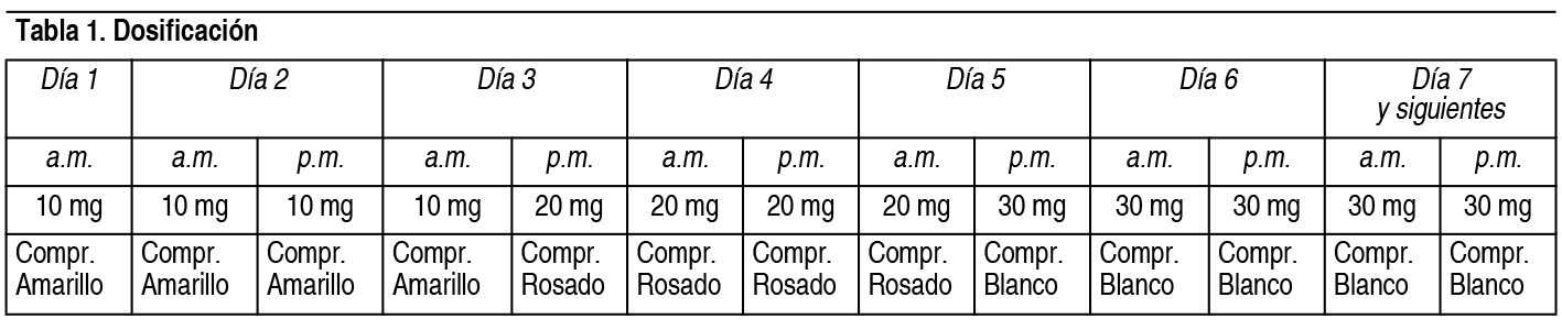 COMPOSICION: Psorolast 10 mg: Cada comprimido recubierto de color amarillo contiene: Apremilast 10 mg. Excipientes: Lactosa Monohidrato; Celulosa Microcristalina; Croscarmelosa Sódica; Estearato de Magnesio; Alcohol Polivinílico; Dióxido de Titanio; Talco; Polietilenglicol 3000; Óxido de Hierro Amarillo. Psorolast 20 mg: Cada comprimido recubierto color rosado contiene: Apremilast 20 mg. Excipientes: Lactosa Monohidrato; Celulosa Microcristalina; Croscarmelosa Sódica; Estearato de Magnesio; Alcohol Polivinílico; Dióxido de Titanio; Talco; Polietilenglicol 3000; Óxido de Hierro Rojo. Psorolast 30 mg: Cada comprimido recubierto color blanco contiene: Apremilast 30 mg. Excipientes: Lactosa Monohidrato; Celulosa Microcristalina; Croscarmelosa Sódica; Estearato de Magnesio; Alcohol Polivinílico; Dioxido de Titanio; Talco; Polietilenglicol 3000. ACCION: Inmunosupresor selectivo. Código ATC: L04AA32. INDICACIONES: Artritis psoriásica: Psorolast, solo o en combinación con fármacos antirreumáticos modicadores de la enfermedad (FAMEs), está indicado para el tratamiento de la artritis psoriásica (APs) activa en pacientes adultos que han tenido una respuesta inadecuada, o han presentado intolerancia al tratamiento previo con un FAME. Psoriasis: Psorolast está indicado en el tratamiento de la psoriasis en placas crónica de moderada a grave en pacientes adultos que no han respondido o tienen contraindicado o no toleran otro tratamiento sistémico, incluyendo ciclosporina, metotrexato o psoraleno y luz ultravioleta A (PUVA). DOSIS: La dosis recomendada de Psorolast es de 30 mg 2 veces al día por vía oral, por la mañana y por la noche, cada 12 horas aproximadamente, sin restricciones de alimentos. Es necesario un programa inicial de administración de dosis crecientes, para titular al paciente, como se muestra en la Tabla 1. Luego de la titulación inicial no es necesario repetir el proceso. Día 7 y resto del tratamiento: 1 comprimido recubierto de 30 mg color blanco por la mañana y un comprimido recubierto de 30 mg color blanco por la tarde. Si el paciente olvida una dosis de Psorolast, debe tomarla lo antes posible. Si está cerca de la hora de la siguiente dosis, debe saltear la dosis olvidada y tomar la siguiente dosis a su hora habitual. No se deben tomar 2 dosis al mismo tiempo. Si un paciente no muestra indicios de beneficio terapéutico después de 24 semanas, se debe reconsiderar el tratamiento. Se debe evaluar la respuesta del paciente al tratamiento de forma periódica. Ver Tabla Poblaciones especiales: Pacientes de edad avanzada: No se requiere un ajuste de la dosis en esta población de pacientes. Pacientes con insuficiencia renal: No es necesario un ajuste de la dosis en pacientes con insuficiencia renal leve y moderada. La dosis de apremilast se debe reducir a 30 mg 1 vez al día en pacientes con insuficiencia renal grave. Para el escalado inicial de la dosis en este grupo, se recomienda tomar únicamente las dosis de Psorolast de la mañana del programa de la Tabla 1 y saltearse las dosis de la noche. Pacientes con insuficiencia hepática moderada y severa: La presencia de insuficiencia hepática moderada o severa no afecta el metabolismo de apremilast en el organismo. Es por eso que no se necesita ajuste de dosis en esta población. Población pediátrica: No se han establecido la seguridad y la eficacia de apremilast en niños de 0 a 17 años. No se dispone de datos. Forma de administración: Psorolast se administra por vía oral. Los comprimidos recubiertos con película se deben tragar enteros y se pueden tomar con o sin alimentos. PRESENTACIONES: Psorolast envase de inicio: Envase conteniendo 1 blister con 4 comprimidos recubiertos de 10 mg color amarillo; 1 blister con 4 comprimidos recubiertos de 20 mg color rosado; 1 blister con 5 comprimidos recubiertos de 30 mg color blanco. |