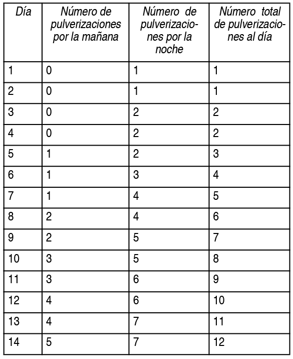Conservación:Período de validez: 2 años. Estabilidad desde la primera apertura: Envase con 10 ml: 42 días a partir de la fecha de apertura. Precauciones especiales de conservación: Conservar en refrigerador (entre 2° C-8° C). Una vez abierto el envase pulverizador, no es necesaria su conservación en el refrigerador, pero no debe conservarse a temperatura superior a 25° C. Guardar en posición vertical.