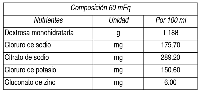 Acción Terapéutica: Solución de electrolitos orales y dextrosa para la prevención y tratamiento oral de la deshidratación leve a moderada en niños y adultos como consecuencia de diarrea de cualquier origen.