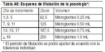 Posología: El tratamiento con Betaferon deberá iniciarse bajo la supervisión de un médico con experiencia en el tratamiento de esta enfermedad. La dosis recomendada de Betaferon es de 250 mcg (8 millones de UI), correspondiente a 1 ml de solución reconstituida (ver Instrucciones de uso y manipulación), inyectada por vía subcutánea cada 2 días. En general se recomienda al comienzo del tratamiento una titulación de la dosis. Los pacientes deben recibir inicialmente una dosis de 62.5 mcg (0.25 ml) por vía subcutánea cada 2 días, la cual se incrementará lentamente hasta una dosis de 250 mcg (1.0 ml) cada 2 días. Este período de titulación se podrá ajustar de acuerdo con la tolerancia individual.