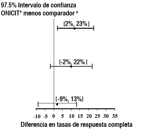 Estos estudios muestran que la Onicit es eficaz para la prevención de la náusea y el vómito tardío asociados con el curso inicial y los cursos repetidos de quimioterapia moderadamente emetogénica.