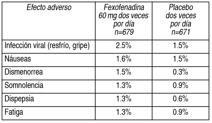 COMPOSICION: Cada comprimido recubierto contiene: Fexofenadina Clorhidrato 180 mg. ACCION: Antagonista de los receptores H1 de la histamina. INDICACIONES: Está indicado para el alivio de los síntomas asociados con urticaria idiopática crónica en adultos y niños de 12 años de edad y mayores. DOSIS: Adultos y niños de 12 años de edad o mayores: se recomienda administrar 1 comprimido recubierto (180 mg) de Alerfedine 180 1 vez por día. Insuficiencia renal: se recomienda administrar 60 mg 1 vez por día, como dosis inicial. CONTRAINDICACIONES: Hipersensibilidad a la fexofenadina o a otro componente del producto. EFECTOS: El porcentaje de pacientes que abandonó en forma prematura el tratamiento debido a los efectos adversos fue del 2.2% con fexofenadina clorhidrato y del 3.3% con placebo. Efectos adversos comunicados por más del 1% de los pacientes y que fueron más comunes con la fexofenadina que con el placebo: Ver Tabla Efectos adversos comunicados por más del 1% de los pacientes y que fueron más comunes con el placebo que con fexofenadina: cefalea e irritación de garganta. PRECAUCIONES: Embarazo: Categoría C: no hay estudios controlados en mujeres embarazadas. Debido a que los estudios en animales no siempre son predictivos de la respuesta en seres humanos, esta droga será usada durante el embarazo sólo en casos donde el médico determine que el beneficio supera al riesgo para el feto. Lactancia: se desconoce si la fexofenadina o sus metabolitos son excretados en la leche humana. Por lo tanto, no es aconsejable recomendar su uso en mujeres que se encuentren en el período de lactancia. Uso pediátrico: la seguridad y efectividad de la fexofenadina no han sido establecidas en menores de 12 años. INTERACCIONES: La fexofenadina fue coadministrada con eritromicina o ketoconazol bajo condiciones de equilibrio dinámico en voluntarios sanos. No fueron observadas diferencias en los efectos adversos o en el intervalo QTc cuando se administró fexofenadina sola o en combinación con eritromicina o ketoconazol. Los resultados de estos estudios figuran en la siguiente tabla: Ver Tabla Estos cambios en los niveles plasmáticos estaban dentro del rango de los niveles plasmáticos alcanzados en estudios clínicos adecuados y bien controlados. La fexofenadina no ha tenido efecto sobre la farmacocinética de la eritromicina o el ketoconazol. SOBREDOSIFICACION: Ante la eventualidad de una sobredosificación, concurrir al hospital más cercano o comunicarse con los centros de toxicología: Hospital de Pediatría Ricardo Gutiérrez: (011) 4962-6666/2247; Hospital A. Posadas: (011) 4654-6648/4658-7777. El tratamiento es esencialmente sintomático y de soporte. La hemodiálisis no elimina efectivamente la fexofenadina de la sangre. CONSERVACION: Mantener lejos del calor y la luz solar directa. Conservar a una temperatura entre 15 y 30°C, en lugar seco. PRESENTACIONES: Envases conteniendo 10 y 20 comprimidos recubiertos. |