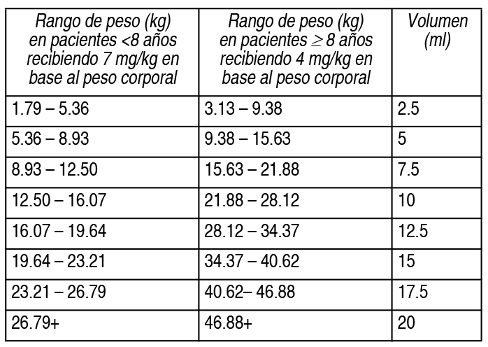 COMPOSICION: Cada 100 ml de suspensión oral contienen: Nevirapina Hemihidrato 1.035 mg (equivalente a Nevirapina anhidra 1g). Excipientes c.s. ACCION: Fármaco con efecto antiviral sobre el virus HIV-1, productor de la inmunodeficiencia humana (inhibidor no nucleósido de la transcriptasa inversa). INDICACIONES: Viramune® (nevirapina) está indicado para el uso, en combinación con otro fármaco antirretroviral, para el tratamiento de pacientes infectados con el virus VIH-1. Virus resistentes emergen rápidamente y uniformemente cuando se administra Viramune como monoterapia. Por lo tanto, siempre se debe administrar Viramune en combinación con al menos 2 fármacos antirretrovirales adicionales. Está indicado en terapia combinada junto con otros fármacos antirretrovirales para la prevención de la transmisión perinatal del VIH-1 en mujeres embarazadas que se encuentren en trabajo de parto y no estén tomando tratamiento antirretroviral altamente efectivo (HAART, de sus siglas en inglés), a razón de una dosis única a la madre durante el trabajo de parto vía oral más una dosis única vía oral al recién nacido. El tratamiento con Viramune® en monoterapia se ha asociado a desarrollo de resistencia a los inhibidores no nucleosídicos de la transcriptasa inversa. En mujeres y bebés, previamente tratados con una dosis única de nevirapina sola para prevención de la transmisión de VIH-1 de madre a hijo, la eficacia de Viramune® como parte de una terapia combinada puede disminuir. Donde otros tratamientos antirretrovirales se encuentren disponibles, el régimen de dosis única de Viramune® debería combinarse adicionalmente con otros antirretrovirales efectivos (como lo recomiendan las pautas de tratamiento internacionales). DOSIS: Considérese que cada ml de la suspensión contiene: 10 mg de nevirapina, o sea que 1 mg = 0.1 ml de suspensión. La dosis de Viramune® recomendada es: Pacientes adultos (mayores de 16 años): La dosis recomendada de Viramune® es de 20 ml (200 mg) de suspensión oral 1 vez por día, durante los primeros 14 días (este período de dosificación inicial es imprescindible pues disminuye la posibilidad de rash cutáneo), siguiendo posteriormente con 20 ml (200 mg) de suspensión oral 2 veces por día, combinado con al menos 2 fármacos antirretrovirales. Viramune® se puede tomar con o sin alimentos. Para los tratamientos administrados concomitantemente, se recomienda seguir el dosaje y monitoreo indicados por los fabricantes.Suspensión pacientes pediátricos: La dosis diaria total no debe exceder los 400 mg (40 ml) en ningún paciente. Viramune® puede administrarse en pacientes pediátricos en base tanto a la superficie como al peso corporal, tal y como se indica a continuación: En base a la superficie corporal, utilizando la fórmula de Mosteller, la dosis oral recomendada en pacientes pediátricos de todas las edades es de 150 mg/m2 1 vez al día durante 2 semanas, seguido a partir de entonces de 150 mg/m2 2 veces al día. Cálculo del volumen de Viramune® suspensión oral (50 mg/5ml) requerido en aquellos pacientes pediátricos cuya pauta de dosificación se calcule en función de la superficie corporal a razón de 150 mg/m2: Ver Tabla En base al peso corporal, la dosis oral recomendada en pacientes pediátricos de hasta 8 años de edad es de 4 mg/kg 1 vez al día durante 2 semanas, seguido a partir de entonces de 7 mg/kg 2 veces al día. Para pacientes de 8 años y mayores, la dosis recomendada es de 4 mg/kg 1 vez al día durante 2 semanas, seguido a partir de entonces de 4 mg/kg 2 veces al día. Cálculo del volumen de Viramune® suspensión oral (50 mg/ml) requerido en pacientes pediátricos tras el período inicial de 2 semanas: Ver Tabla En un grupo de pacientes pediátricos menores a 3 meses de edad (n=17), las concentraciones plasmáticas de nevirapina fueron dentro del rango observado tanto en los adultos como en el resto de la población pediátrica, pero tuvieron mayor variabilidad interpaciente, especialmente en los niños de 2 meses de vida. Todos los pacientes menores de 16 años que reciban Viramune suspensión oral deben someterse con frecuencia a control de peso o superficie corporal, para evaluar si son necesarios ajustes de dosis. Para la prevención de la transmisión de VIH de madre a hijo: Se indica a la madre, tan pronto como sea posible luego del inicio de trabajo de parto, una dosis única de 200 mg por vía oral, y al recién nacido, una dosis única de 2 mg/kg por vía oral, en el transcurso de las 72 horas después del nacimiento. Si la madre recibió su dosis de Viramune® al menos 2 horas antes del parto, el recién nacido debe recibir la dosis única vía oral de 2 mg/kg inmediatamente después de su nacimiento y una segunda dosis vía oral de Viramune® de 2 mg/kg dentro de 24-72 horas después de la primera dosis. La suspensión oral de Viramune® debe agitarse bien previo a su administración. Es importante que se administre la exacta cantidad indicada utilizando la jeringa de dosificación oral o el vaso dosificador. Se recomienda utilizar una jeringa de dosificación oral, especialmente cuando se administra un volumen de 5 ml o menos. Si se utiliza un vaso dosificador debe ser enjuagado luego del uso y la solución del enjuague, administrada también al paciente. Consideraciones para el manejo de la dosis: Viramune® puede tomarse con o sin alimentos. La realización de análisis bioquímicos que incluyan análisis de función hepática, debe ser realizados previos a la iniciación del tratamiento con Viramune®, y a intervalos regulares durante la terapia. Los pacientes que interrumpan la administración de Viramune® por un período mayor de 7 días, deben reiniciar la pauta de dosificación recomendada durante el período inicial de 2 semanas. Si el paciente olvida tomar una dosis, debe continuar el tratamiento con la próxima dosis. Nunca debe duplicar la dosis siguiente. Los pacientes que presenten exante